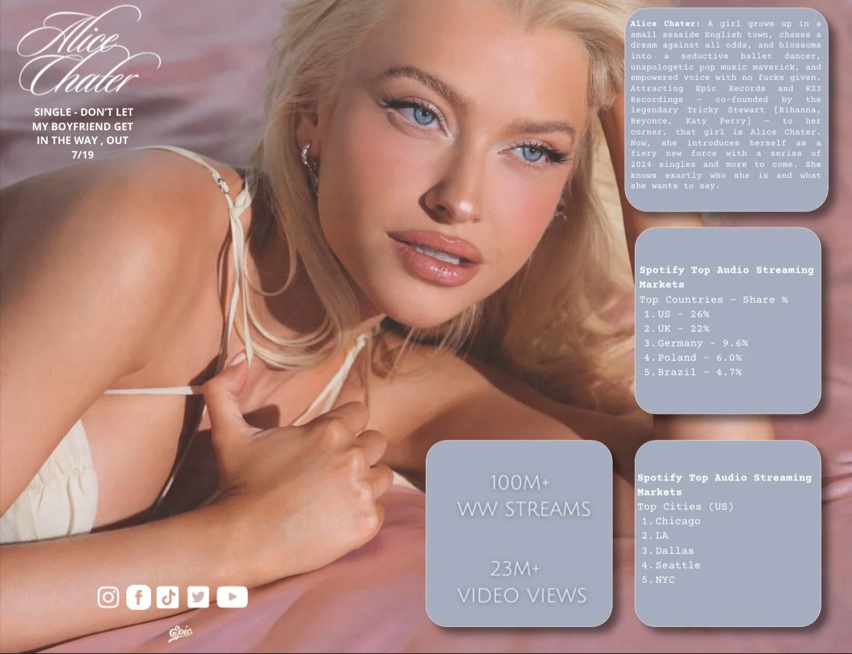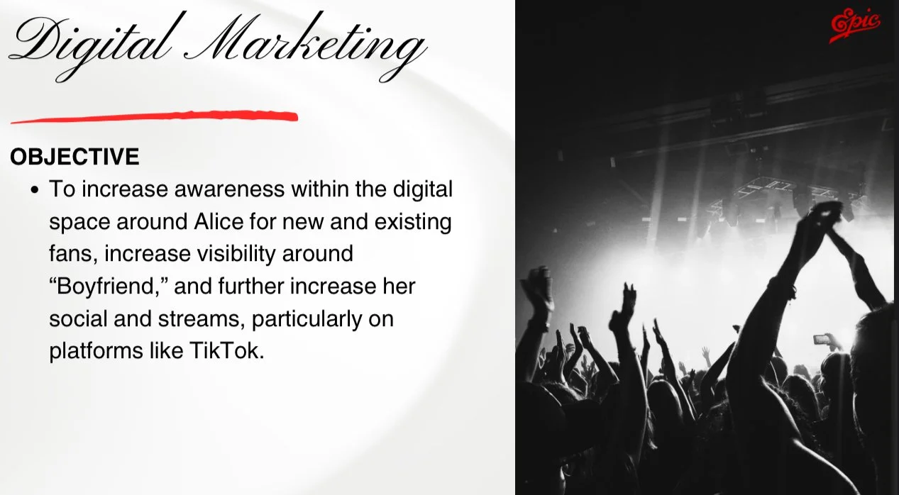 As a Marketing Intern at Epic Records I was responsible for performing administrative responsibilities including marketing recaps, maintaining event calendars, Gen Z demo research, and various other tasks in support of the Epic Records leadership team. Aside from that I assisted in conducting market research and analysis to identify emerging trends, target demographics, and competitive landscape within the music industry. Furthermore, I collaborated with the marketing team to develop and execute innovative marketing strategies for new album releases and artist promotions.